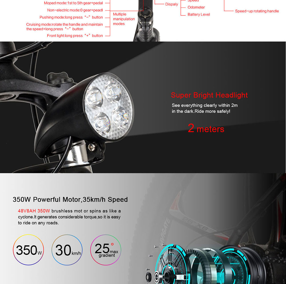 48V 350Wbrushless motor 26 inch electric adult sports bike