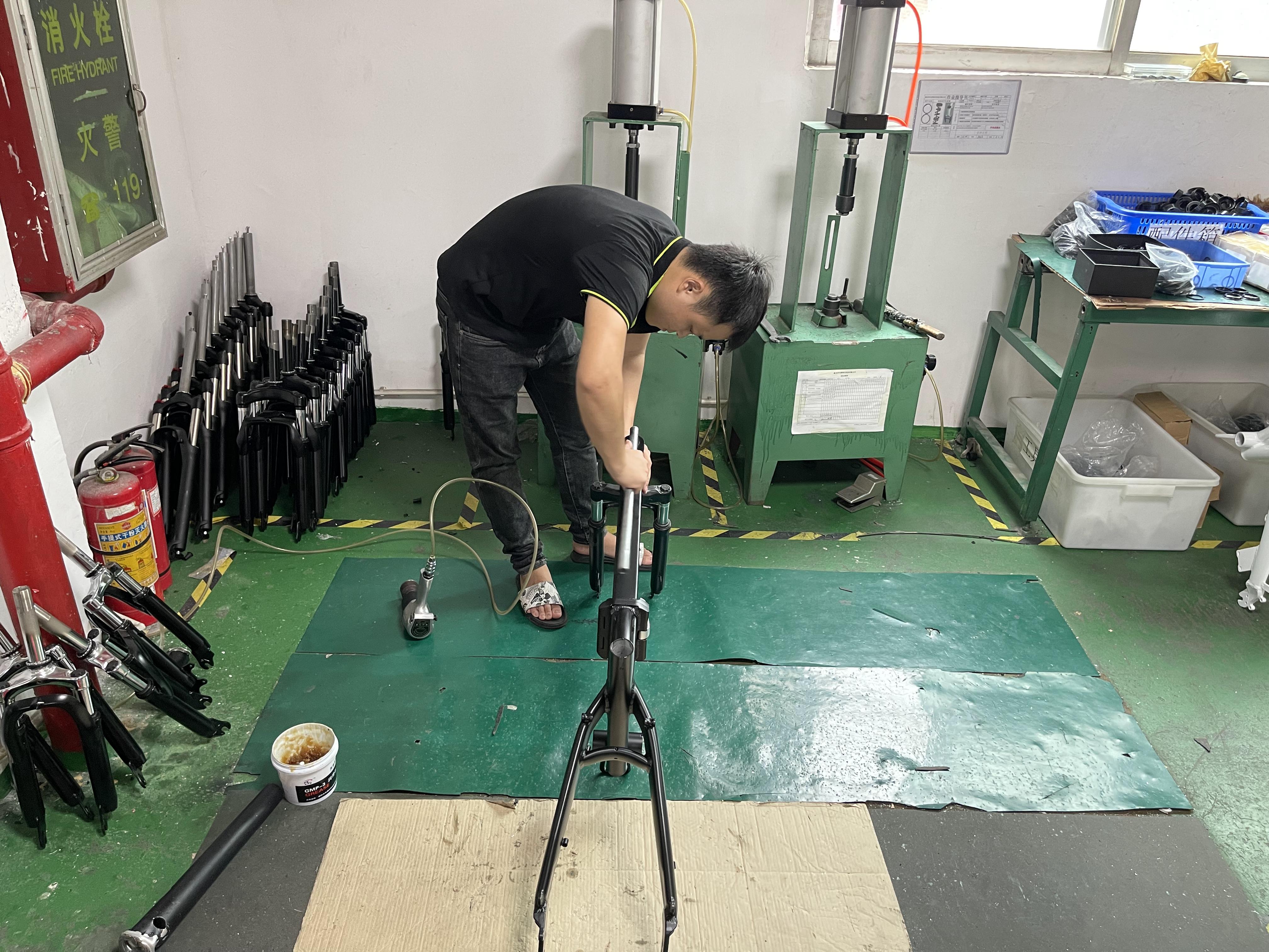 Workers check electric bicycles